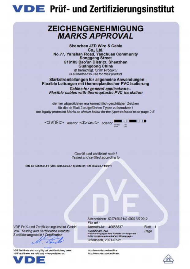 德國(guó)VDE電線(xiàn)電纜資質(zhì)認(rèn)證20210721